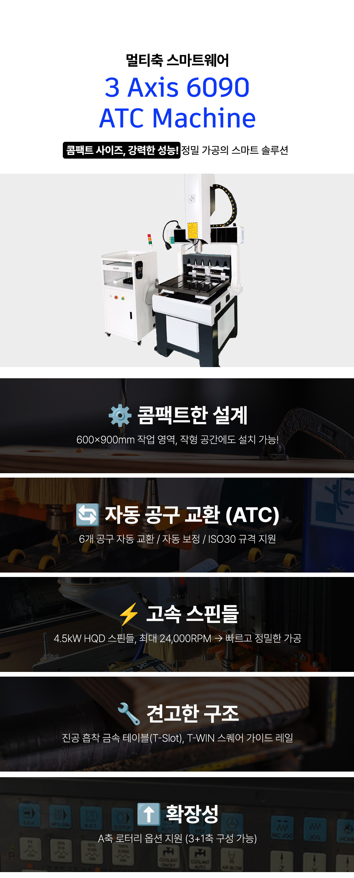 | 스핀들 | HQD 4.5kw 공랭 24,000RPM | |